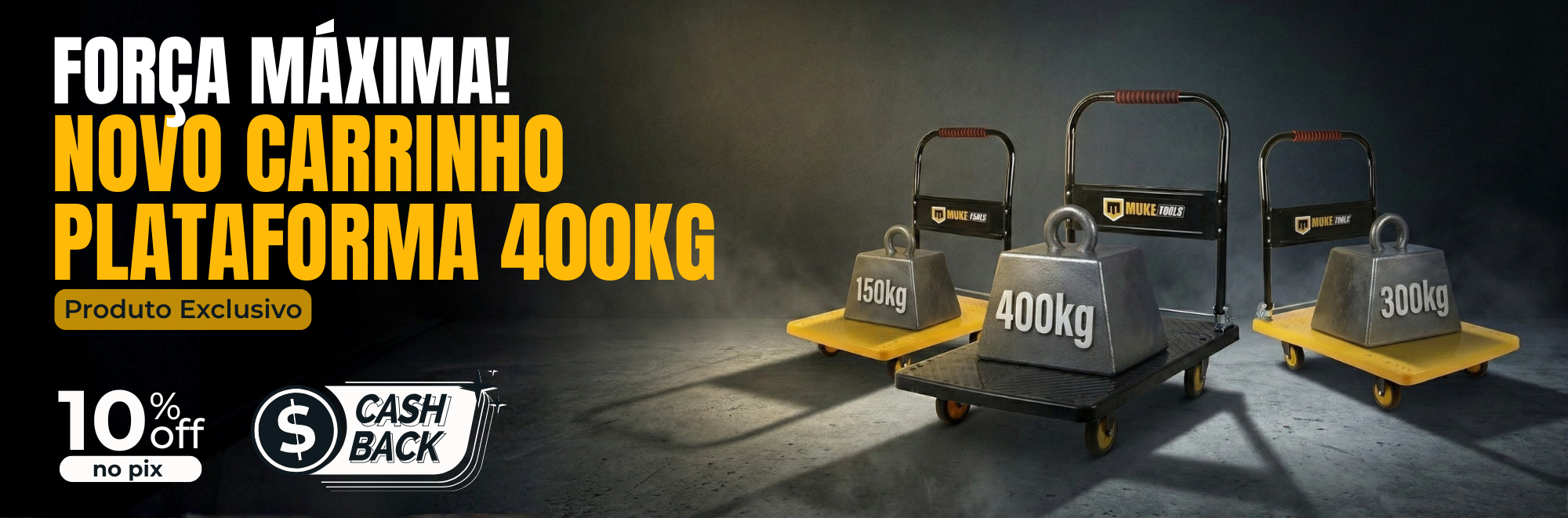 Carrinho Plataforma Dobrável Reforçado para Carga 300kg 4 Rodas Muke Tools
