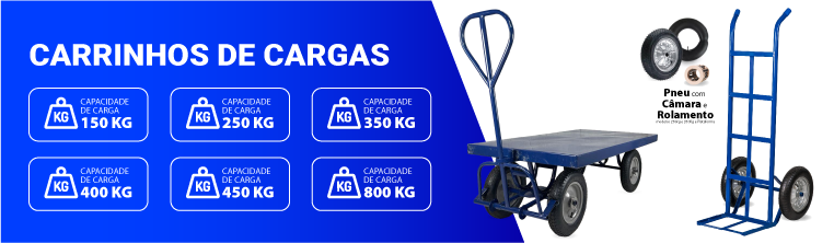 Carrinho de Cargas Armazém Transporte 350kg Azul Reforçado