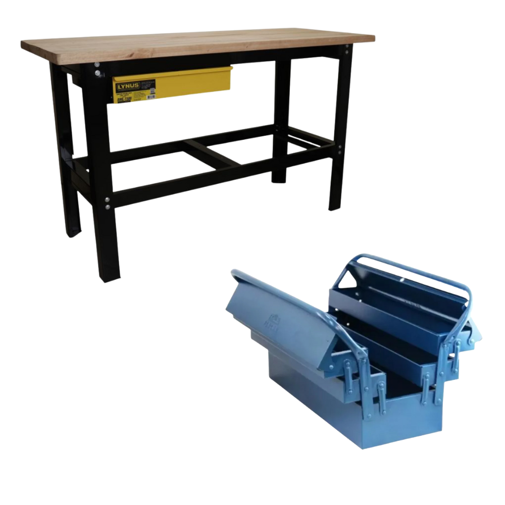 Bancada de Trabalho 1,5m 500kg Com Caixa de Ferramentas Sanfonada Lynus