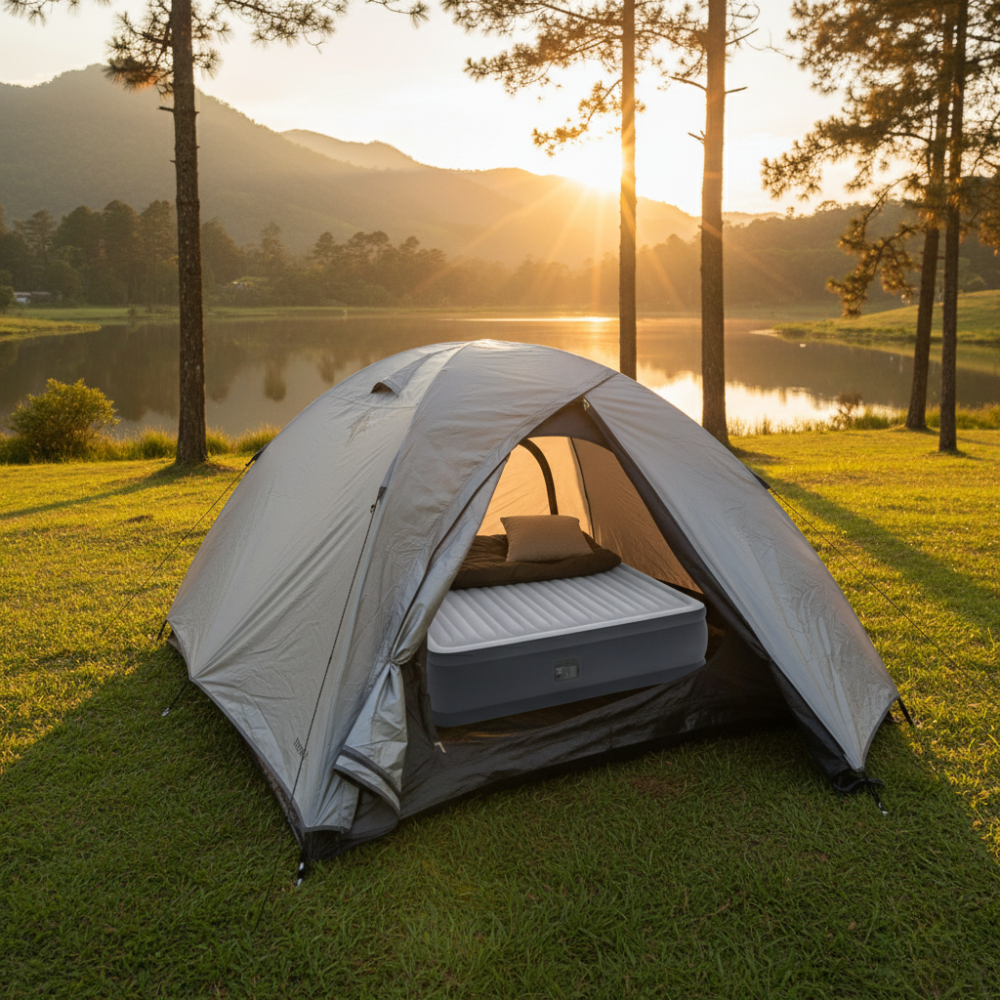 Transforme seu acampamento em uma verdadeira suíte ao ar livre com este Kit Premium. A união da Barraca Nautika Onix 6 Pessoas com tecnologia Blackout e o Colchão Intex Comfort Plush oferece o equilíbrio perfeito entre espaço amplo e conforto de hotel. Enquanto a barraca garante noites escuras, frescas e protegidas da chuva (2000mm), o colchão de 33cm de altura proporciona estabilidade e ergonomia superior. Ideal para casais que querem muito espaço para bagagem ou pequenas famílias que buscam conforto máximo.