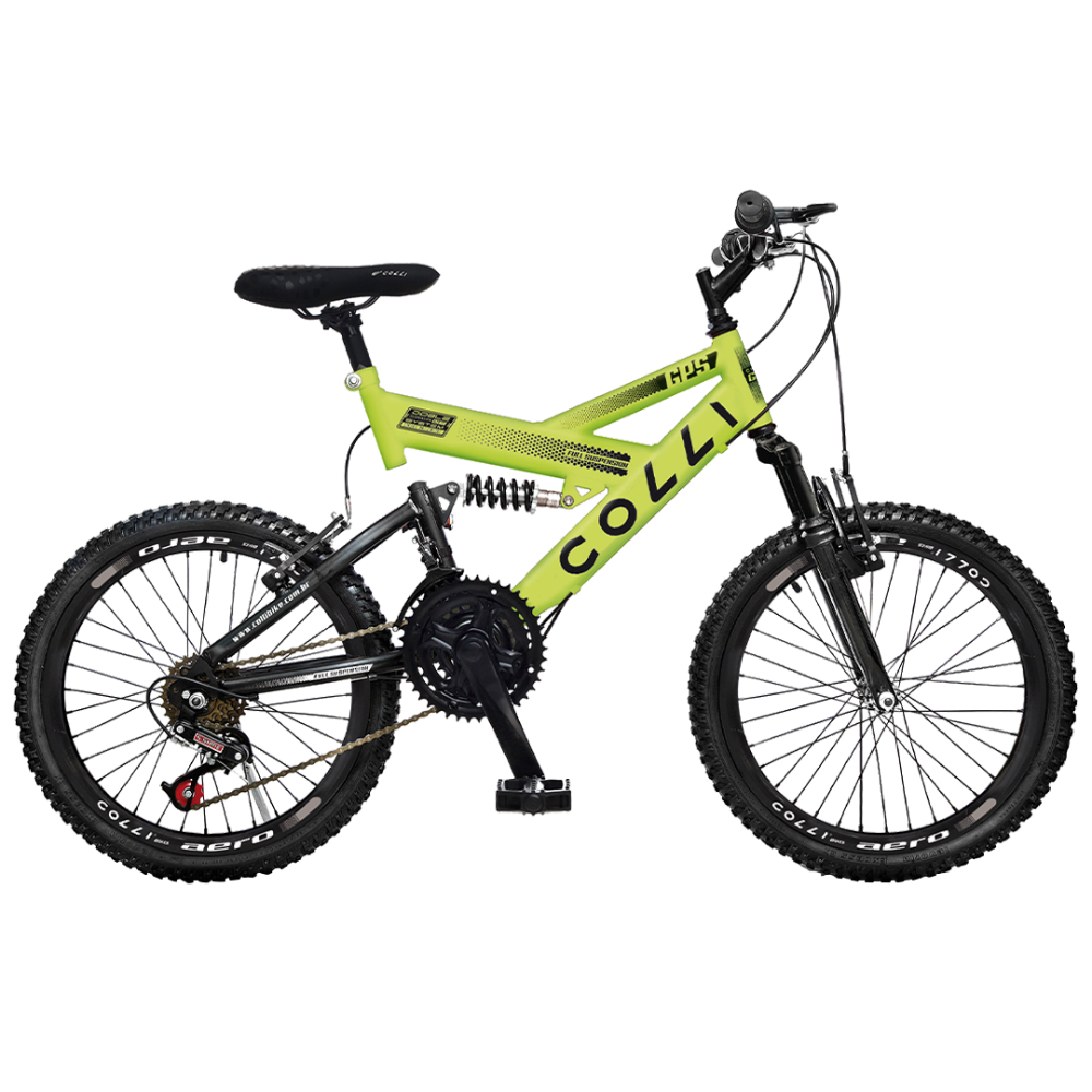 Com um design moderno e chamativo, a Colli GPS é a porta de entrada perfeita para o mundo das bicicletas com marchas e suspensão. Sua estrutura robusta em aço carbono e as rodas reforçadas com 36 raias garantem a durabilidade necessária para acompanhar a energia da garotada, enquanto o sistema de suspensão absorve os impactos, proporcionando mais controle e conforto.