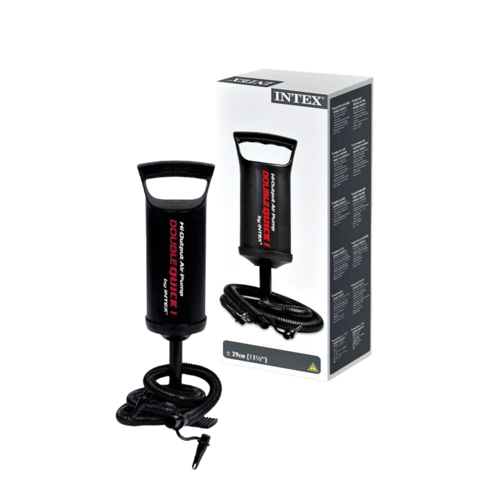 A bomba de ar Double Quick I é durável, portátil e fácil de usar. Esta bomba inflação inclui uma mangueira com 3 bicos de interconexão para ajustar válvulas de inflação de pequeno, médio e grande diâmetro. Esta bomba de ar manual infla tanto para baixo quanto para cima do curso sem desperdício de esforços. Com esta bomba você poderá inflar colchões pneumáticos, barcos infláveis, piscinas, bolas e muito mais!