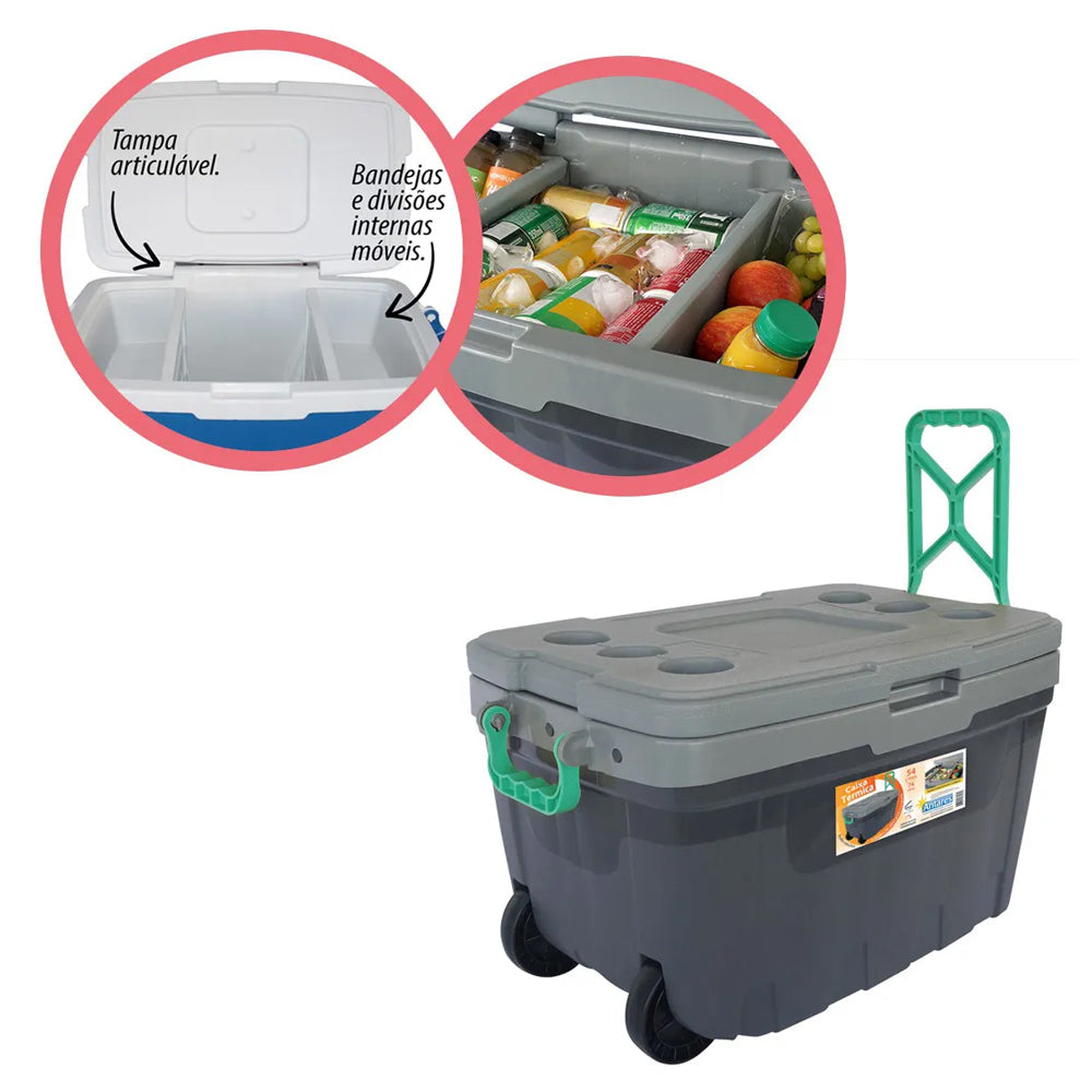 Caixa Térmica 54 Litros C/ Rodinha e Divisorias Camping, Pesca, Cooler