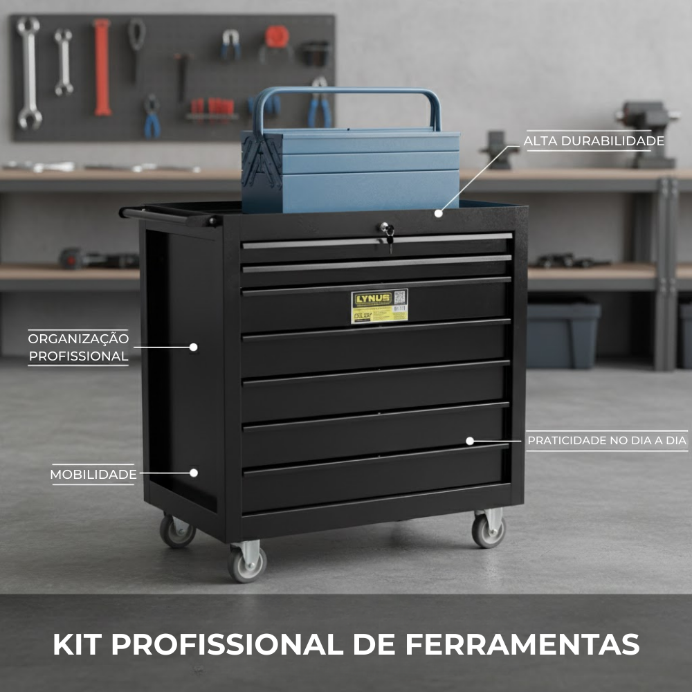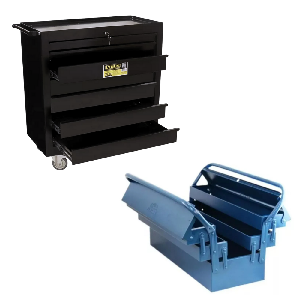 Eleve o nível da sua oficina com o Combo de Organização Profissional. Este kit une a robustez do Carrinho Lynus CFL-807, com capacidade para 250kg, à praticidade da Caixa Sanfonada Fercar de 50cm. É a escolha definitiva para mecânicos, industriários e profissionais que não abrem mão de segurança, durabilidade e produtividade.
