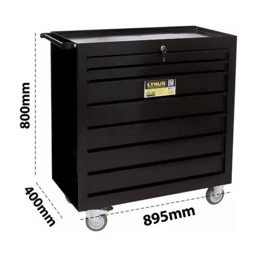 * 1x Carrinho de Ferramentas Lynus CFL-807 com 7 Gavetas e Chave (Preto)