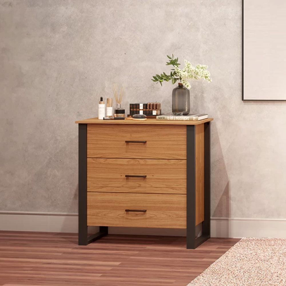 CÔMODA INDUSTRIAL 89,5CM COM 3 GAVETAS FREIJO/PRETO FOSCO PRADEL