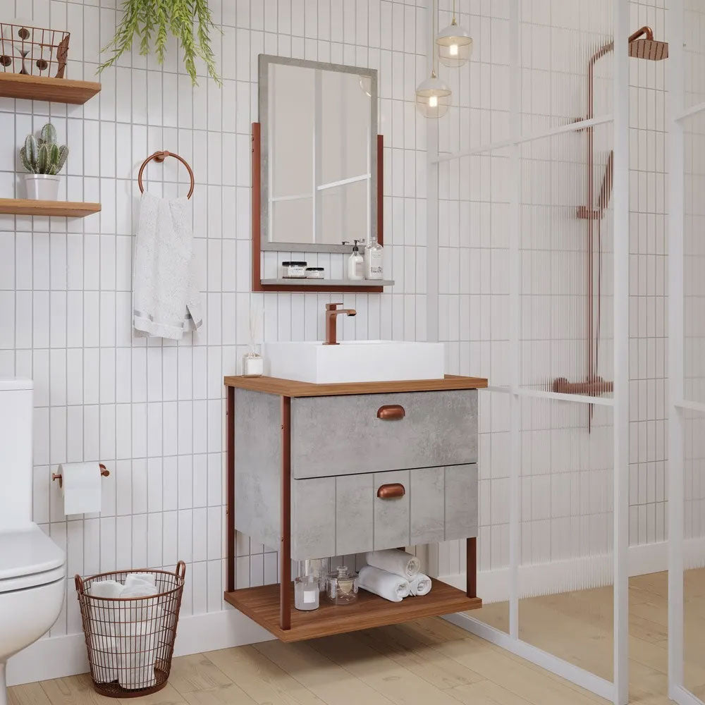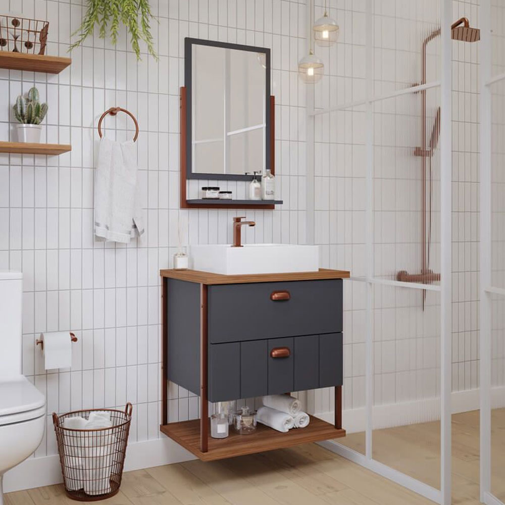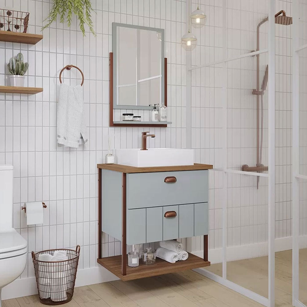 Conteúdo da embalagem: Kit Armário, Cuba e Espelheira.