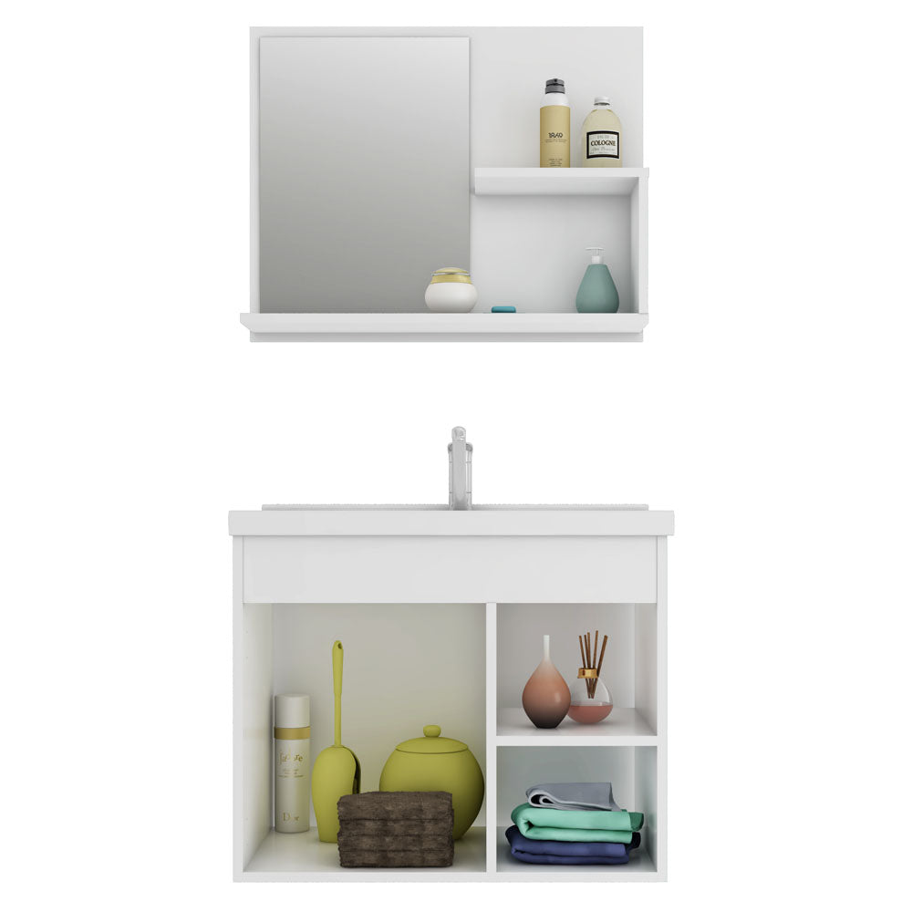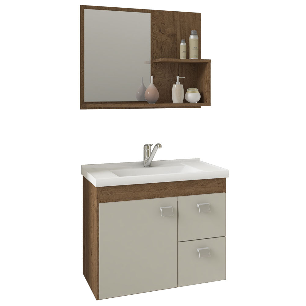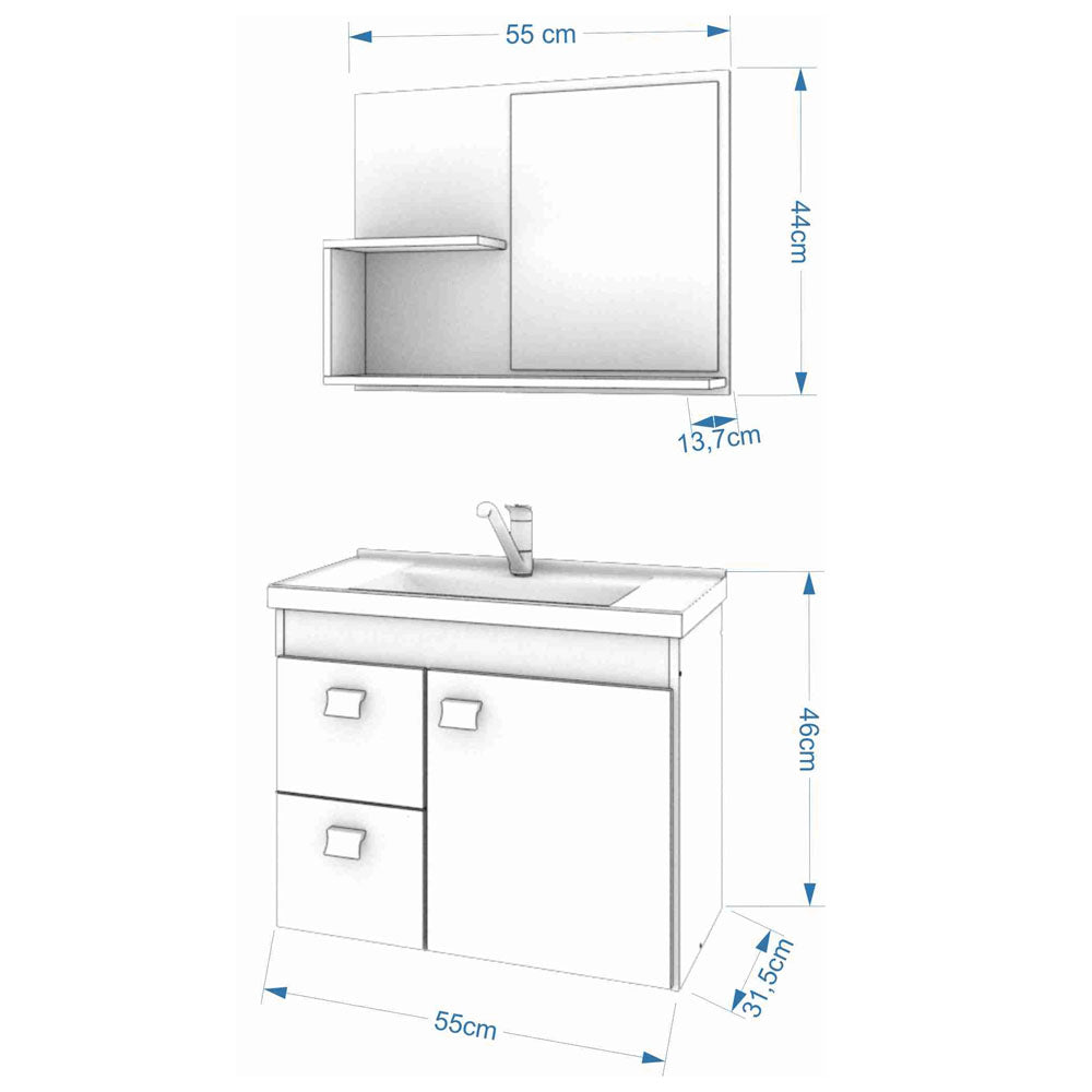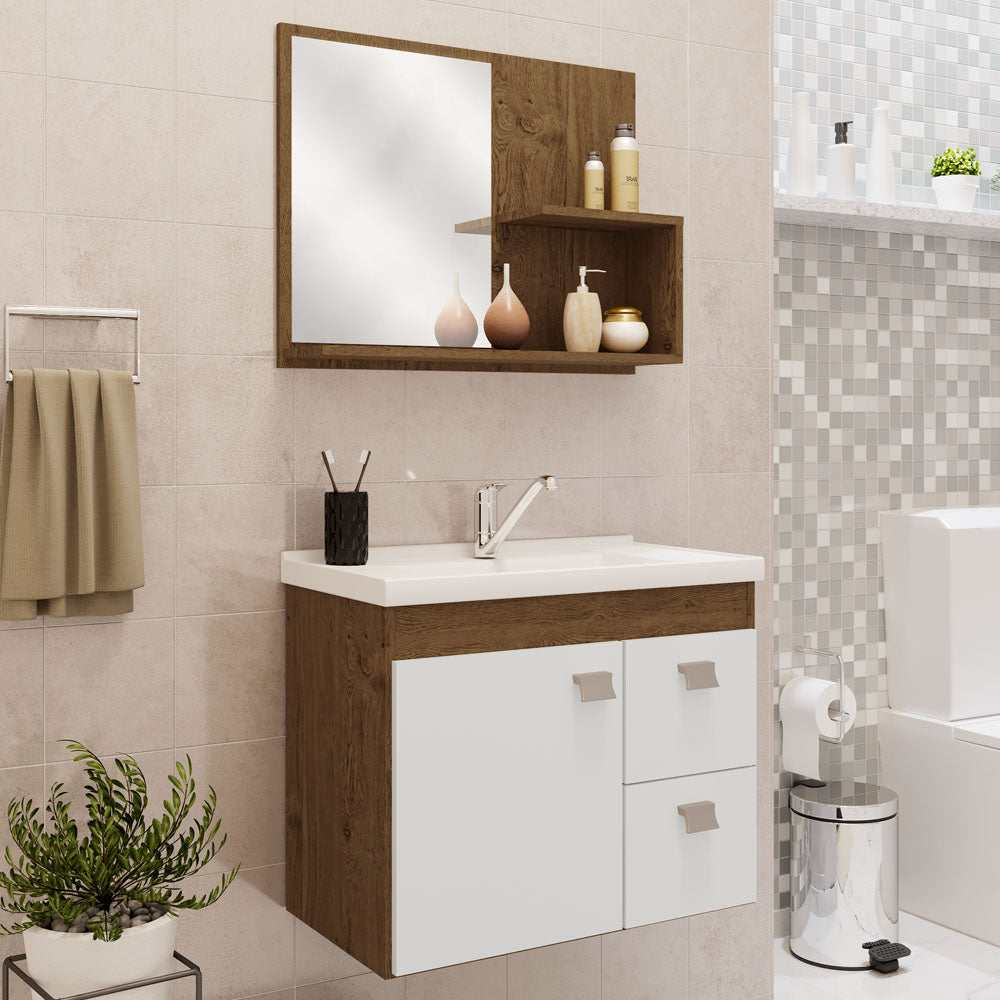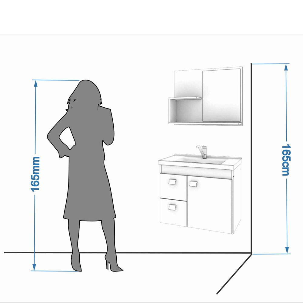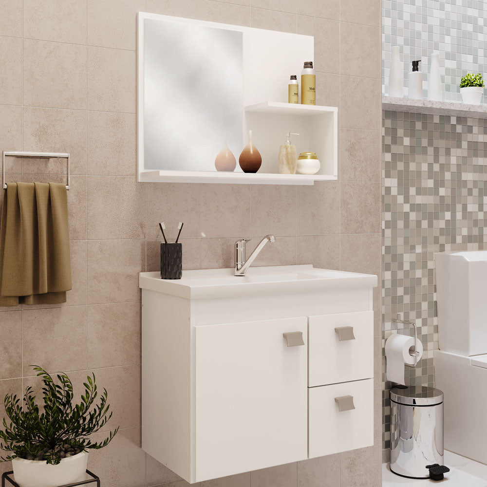 O Gabinete Suspenso para banheiro Isa da MGM é perfeito para você que busca por qualidade e modernidade para o seu lar. Armário para banheiro suspenso com espelheira, uma porta, duas gavetas com corrediças telescópicas, espelheira com duas prateleiras, puxadores em ABS, estrutura 100% MDF, amplo espaço interno, lavatório 100% mármore sintético com mais durabilidade e resistência.