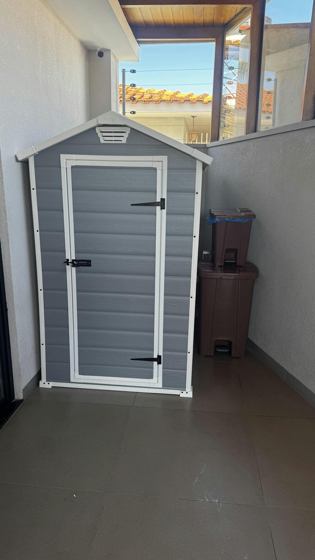 A estrutura do Manor 4x6 é construída com paredes duplas altamente resistentes às intempéries, garantindo proteção contra chuva, sol e vento, enquanto o painel de piso integrado evita o contato direto dos itens com o chão, mantendo-os sempre limpos e secos. Um painel de ventilação embutido assegura a circulação constante de ar no interior, prevenindo a formação de umidade e garantindo maior durabilidade dos objetos armazenados. As dobradiças de metal reforçadas aumentam a estabilidade da estrutura, e a possibilidade de trancar o depósito com cadeado (não incluído) oferece maior segurança para proteger seus pertences.
