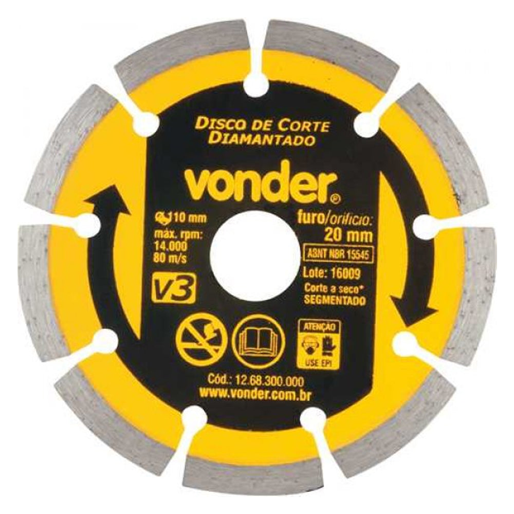 DISCO DE CORTE DIAMANTADO 110 MM FURO DE 20 MM V3 VONDER