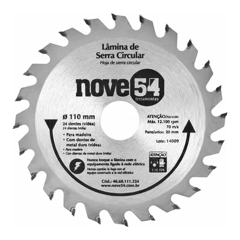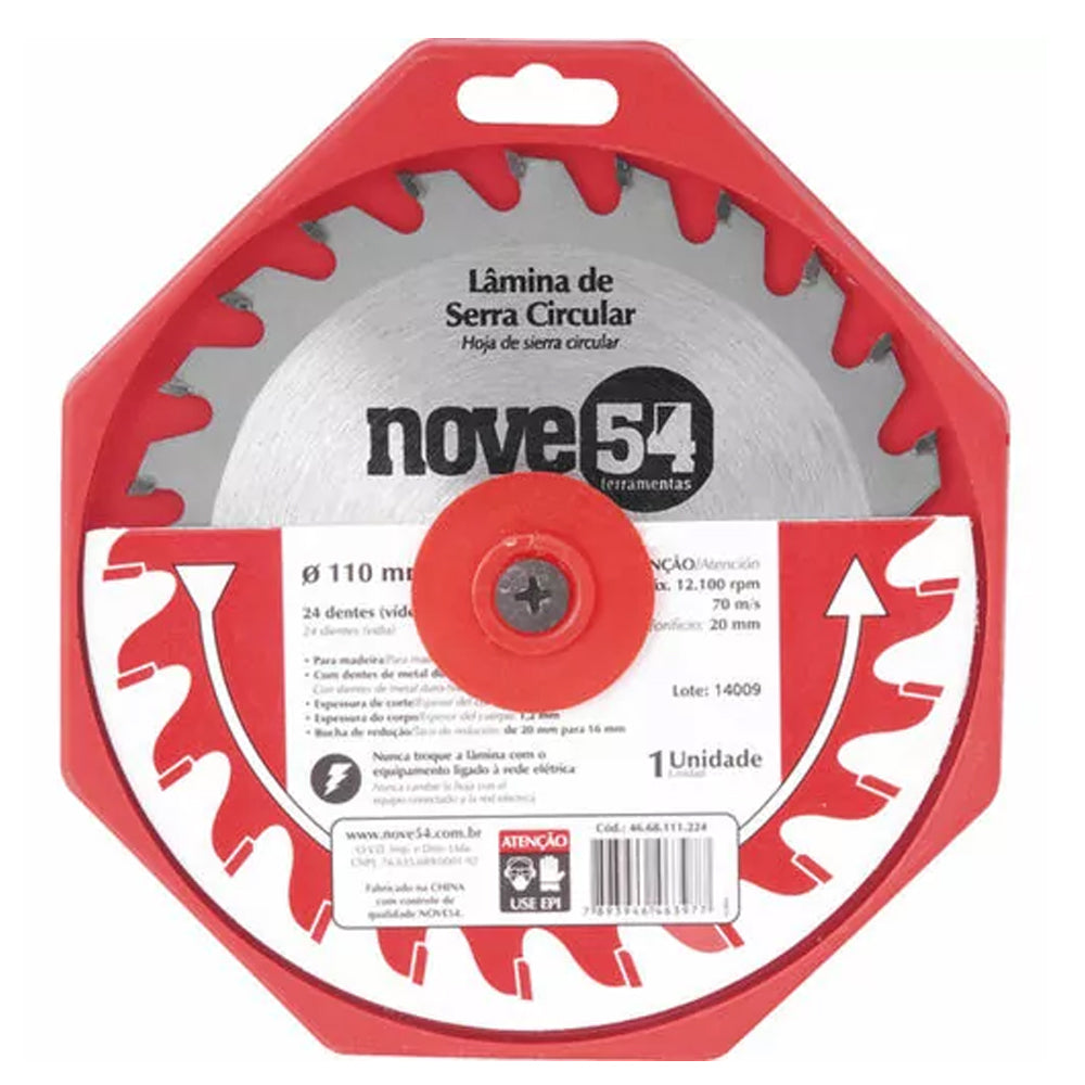 DISCO LÂMINA DE SERRA PARA MADEIRA CIRCULAR 110 X 20 MM 24 DENTES NOVE54
