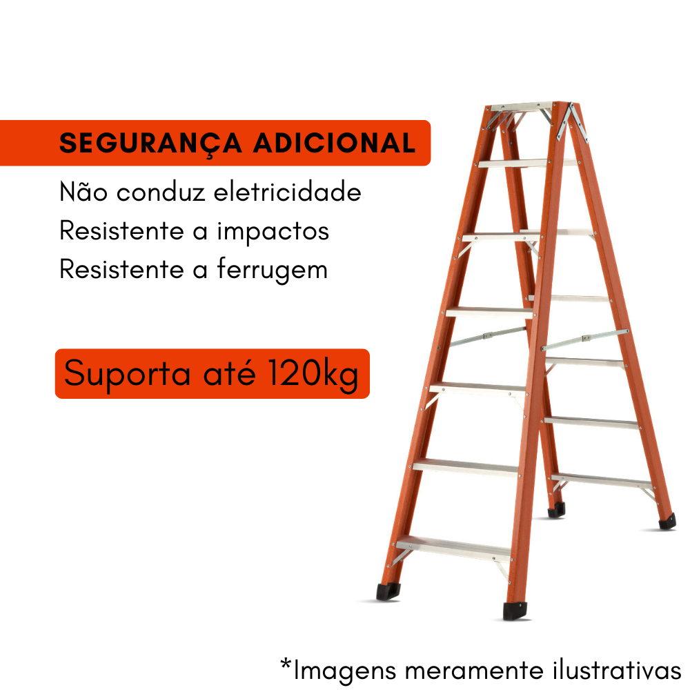 * Máxima Segurança Elétrica: Os perfis em Fibra de Vidro são isolantes elétricos, tornando esta escada a escolha mais segura e recomendada para trabalhos em instalações elétricas ou em ambientes com risco de energização acidental.
