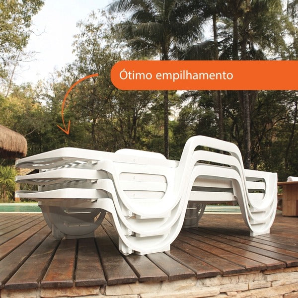 A espreguiçadeira Pitangui possui 3 níveis de ajuste de inclinação para dar mais conforto.