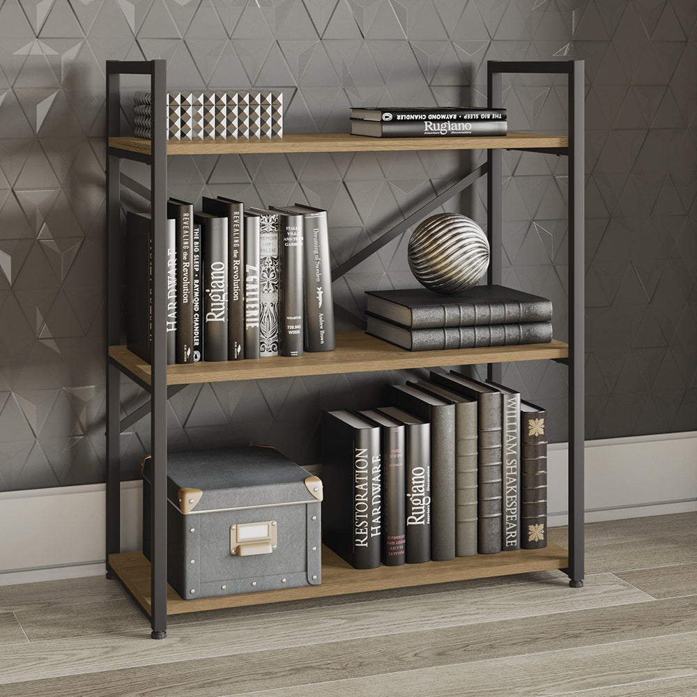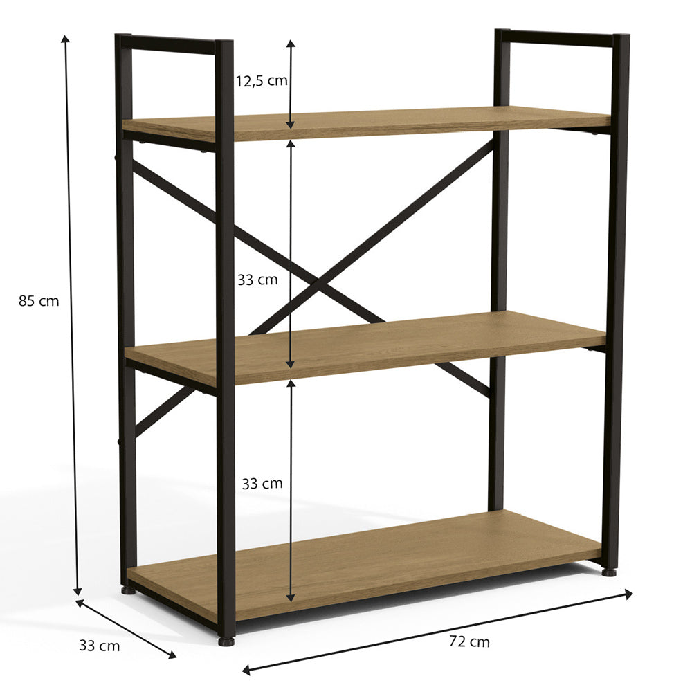 De visual industrial em que a combinação de metal e madeira ganha destaque, ela oferece diferentes apoios para os seus objetos,