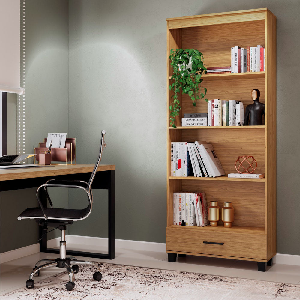 ESTANTE DECORATIVA PARA LIVROS COM 1 GAVETA 4 PRATELEIRAS FREIJO PRADEL