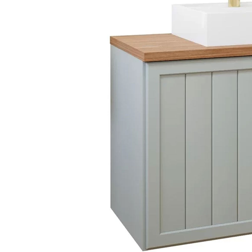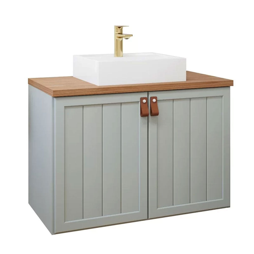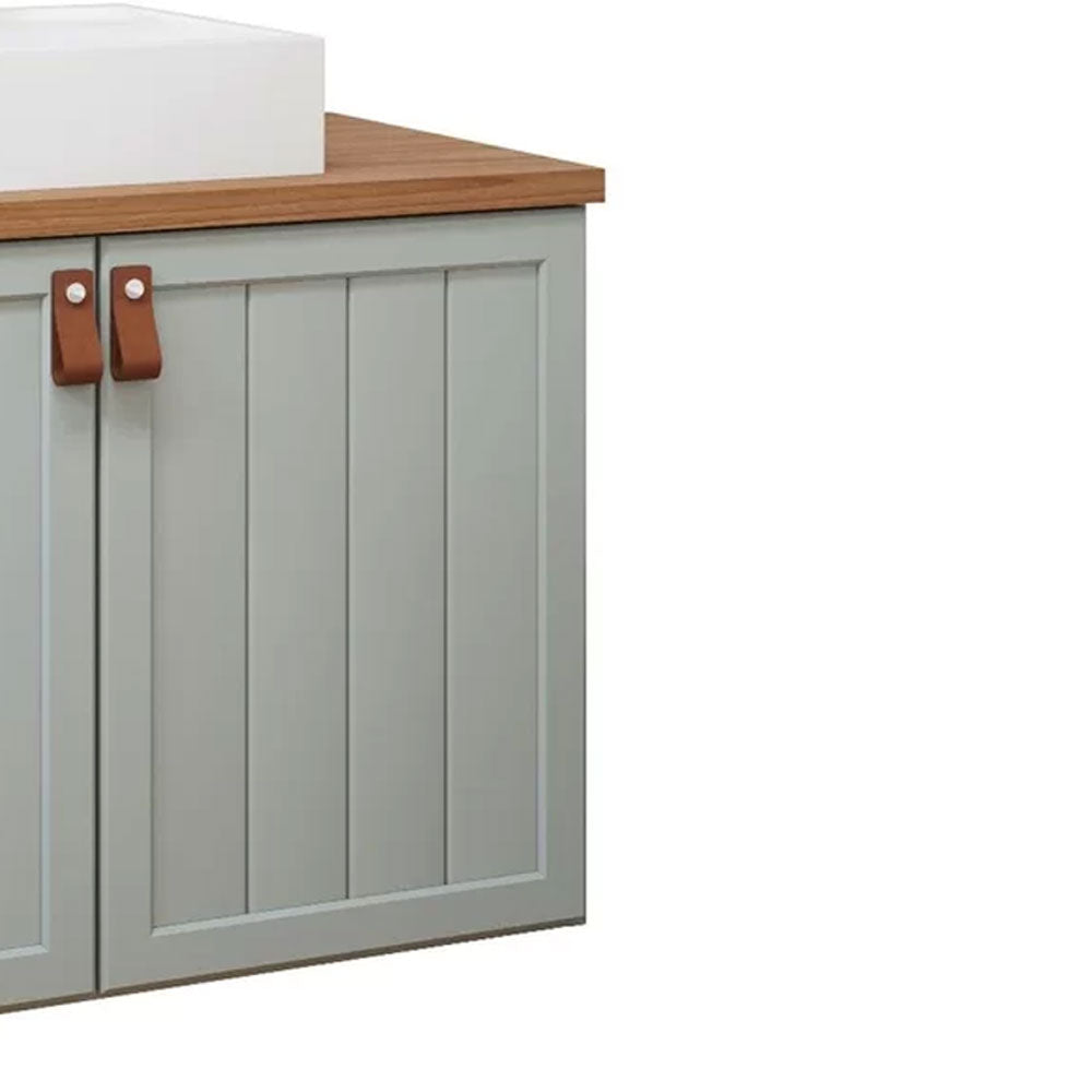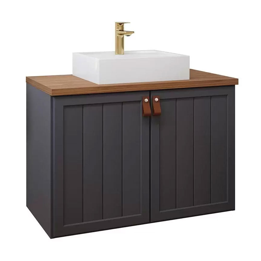 Com um design moderno e elegante, o gabinete é feito em MDF de alta qualidade, garantindo durabilidade e resistência. Possui uma prateleira interna, ideal para guardar itens de higiene pessoal, e uma cuba de apoio em cerâmica, que proporciona um toque de sofisticação ao ambiente.