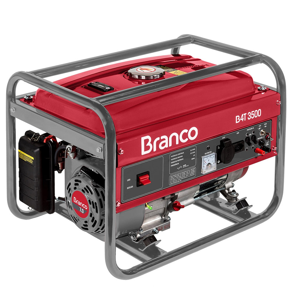 Gerador de Energia à Gasolina Branco B4T-3500 3,5Kva Monofásico com tecnologia AVR 110V/220V