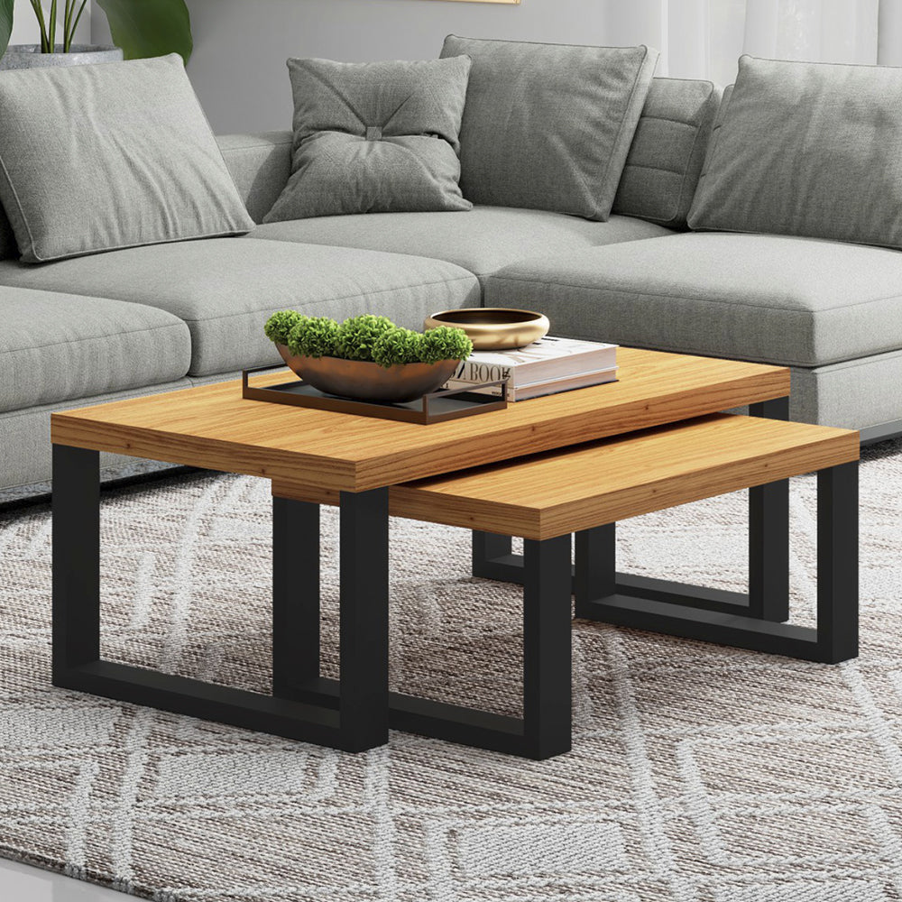 KIT MESA DE CENTRO INDUSTRIAL 89,5X53CM FREIJO PRETO FOSCO PRADEL