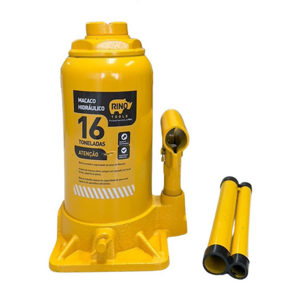 O Macaco Hidráulico Tipo Garrafa 16T da Rino Tools, com capacidade para 16 toneladas é ideal para elevar veículos ou cargas pesadas, sendo uma ferramenta essencial em oficinas mecânicas, indústrias e para motoristas que precisam realizar trocas de pneus, proporcionando segurança e estabilidade. Fabricado com materiais de alta resistência.