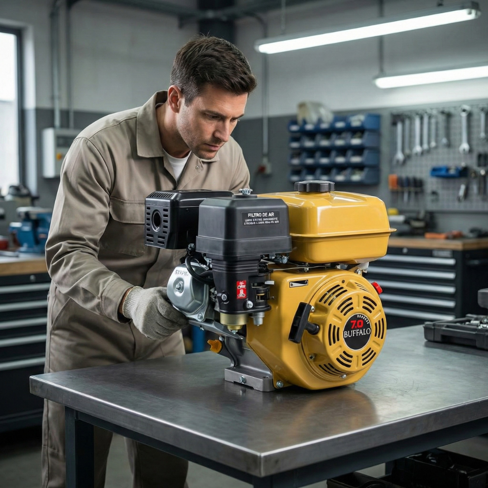 Com 208 cilindradas (207,8 cm³) e 7.0 CV de potência, este motor entrega um torque robusto de 1,35 kgfm, ideal para acionar uma vasta gama de equipamentos na construção civil, agricultura e lazer. Sua construção de 4 tempos com refrigeração a ar garante durabilidade e baixa manutenção.