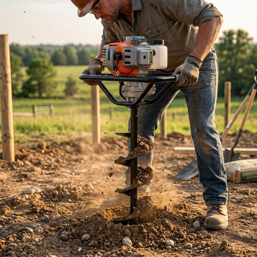 Para que você não perca tempo, o equipamento já vem pronto para o uso, acompanhando uma broca de 200 mm de diâmetro por 800 mm de comprimento (20x80 cm). É a dimensão mais versátil do mercado, perfeita para instalação de cercas, plantio de mudas e fixação de estacas.