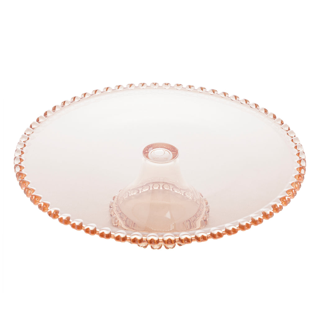 PRATO PARA BOLO CRISTAL COM PÉ CORAÇÃO AMBAR 31,5X10CM