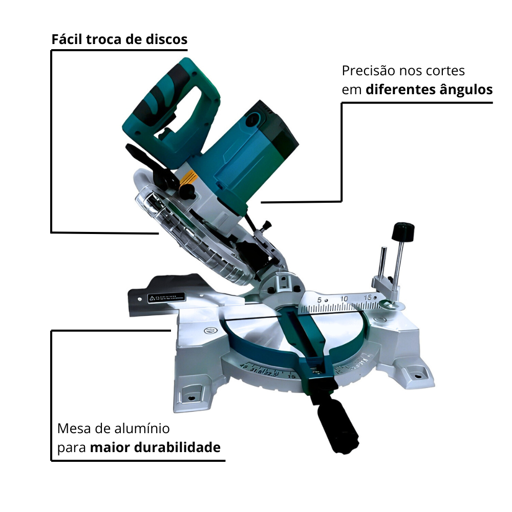 Ideal para oficinas de marcenaria e profissionais que necessitam de cortes precisos em diversos materiais, combinando potência e versatilidade em um equipamento estável.