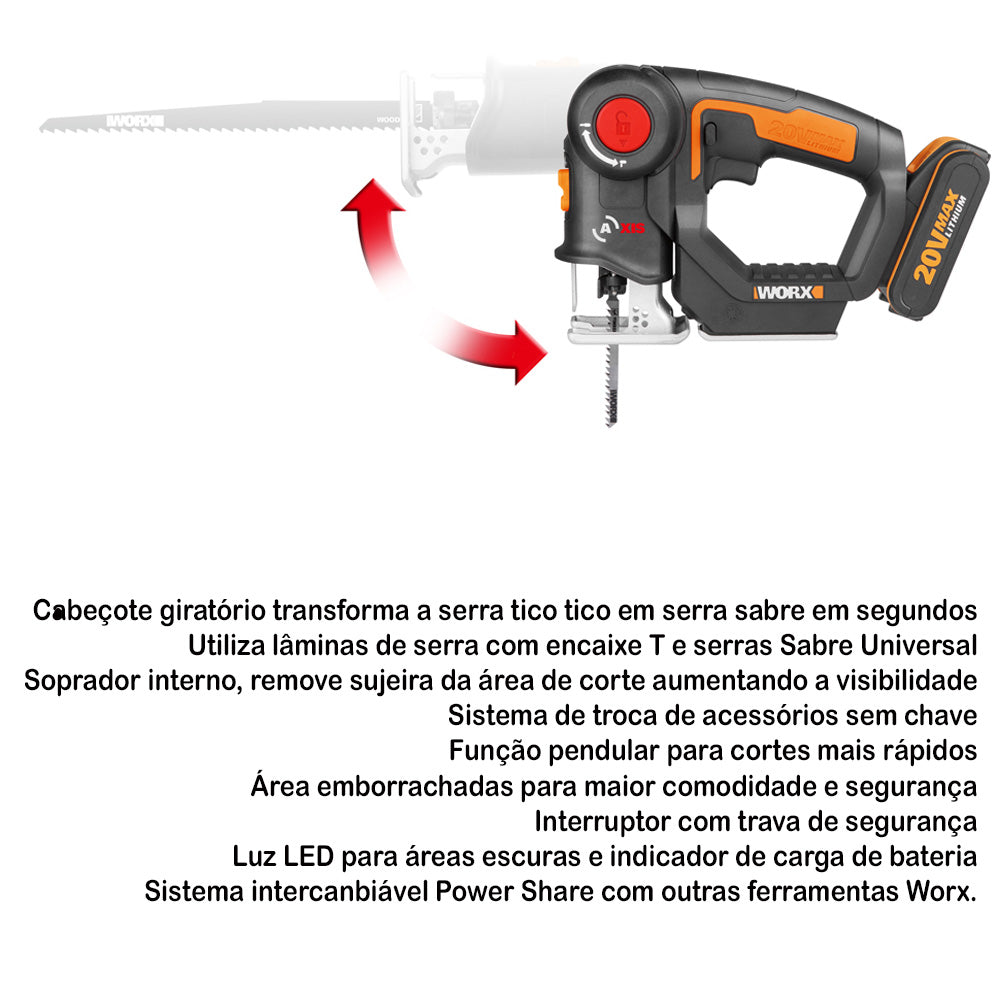 Serra Tico Tico Sabre 2 em 1 à Bateria 20v Bivolt Wx550 Worx