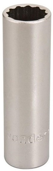 Soquete estriado longo com encaixe de 1/2, medida 12 mm, em aço cromo vanádio, VONDER