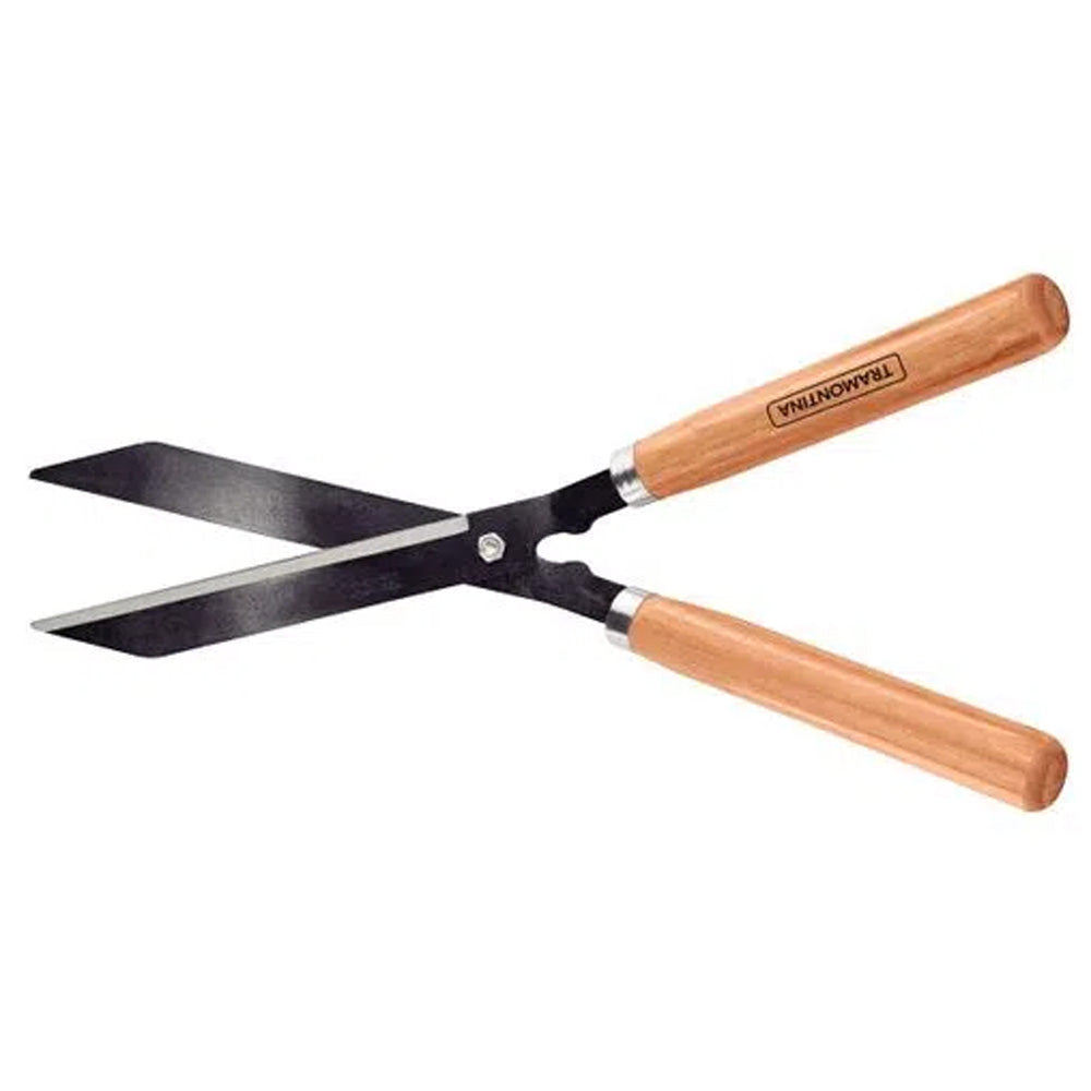 TESOURA PARA CERCA-VIVA, GRAMA TRAMONTINA COM LÂMINA METÁLICA E CABO DE MADEIRA