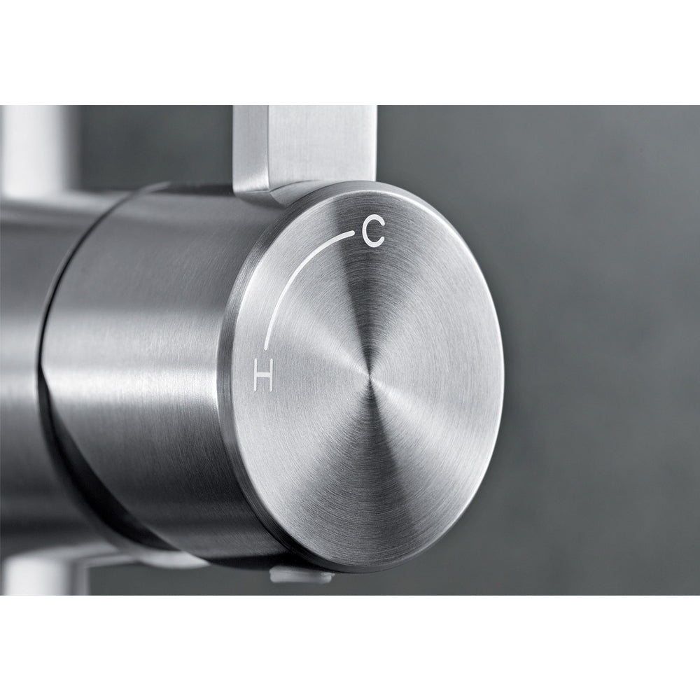 Fabricado com elementos de alta qualidade em aço inoxidável sólido escovado